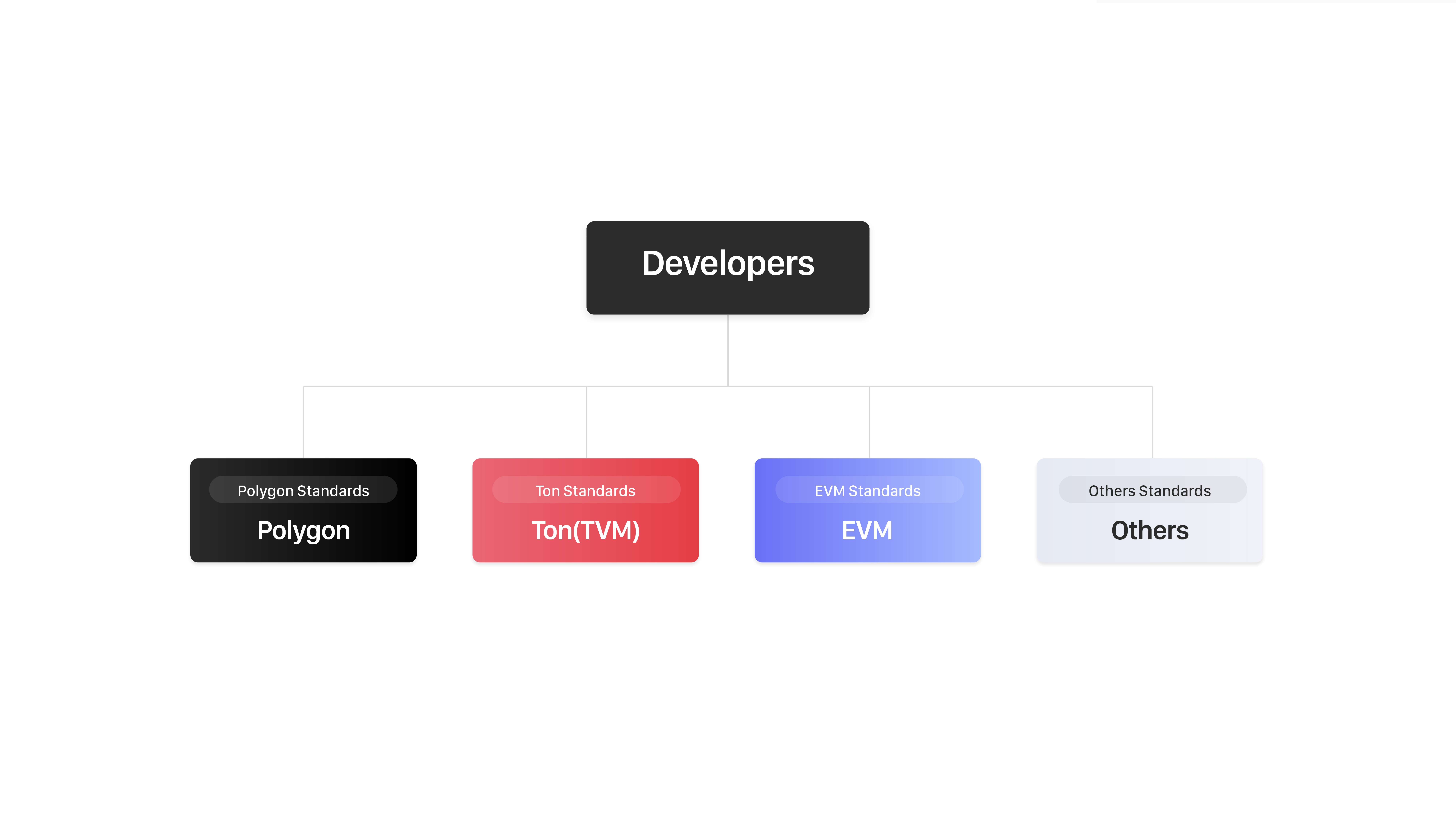 An obvious way to accelerate the search for the “killer crypto consumer app” is to encourage more Web2 developers who are already experienced and successful in building successful consumer apps at scale to attempt to do so in Web3. However when Web2 developers want to onboard into Web3, they face the challenge of multiple technical standards, due to the presence of many different blockchains. Even sophisticated Web3 developers may struggle with handling too many kinds of blockchain technical details, and the complexity that comes with multi-chain interactions, let alone someone new to Web3.